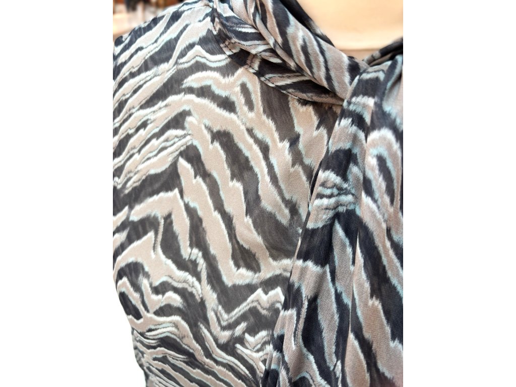 Elegantní blůzka značky Barbara v zvířecím vzoru je ideálním doplňkem k pepito kostýmu, ale perfektně vynikne i samostatně. Díky lehkému a vzdušnému materiálu z viskózy působí velmi sofistikovaně a zároveň pohodlně. Zavazování u krku dodává modelu ženskost a šik styl. Skvěle se hodí jak do práce, tak i pro slavnostní příležitosti.