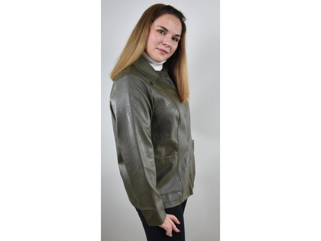 Stylové košilové sako z kvalitní ekokůže. Materiál: 50% viskóza, 50% polyuretan. Vyrobeno v Itálii.