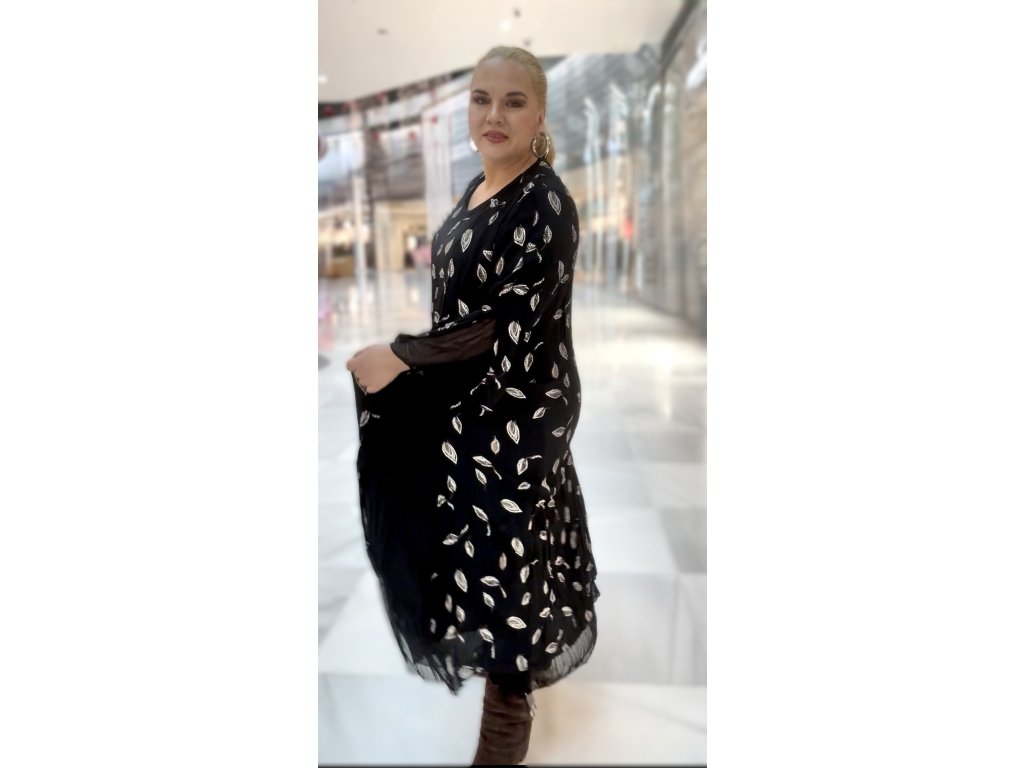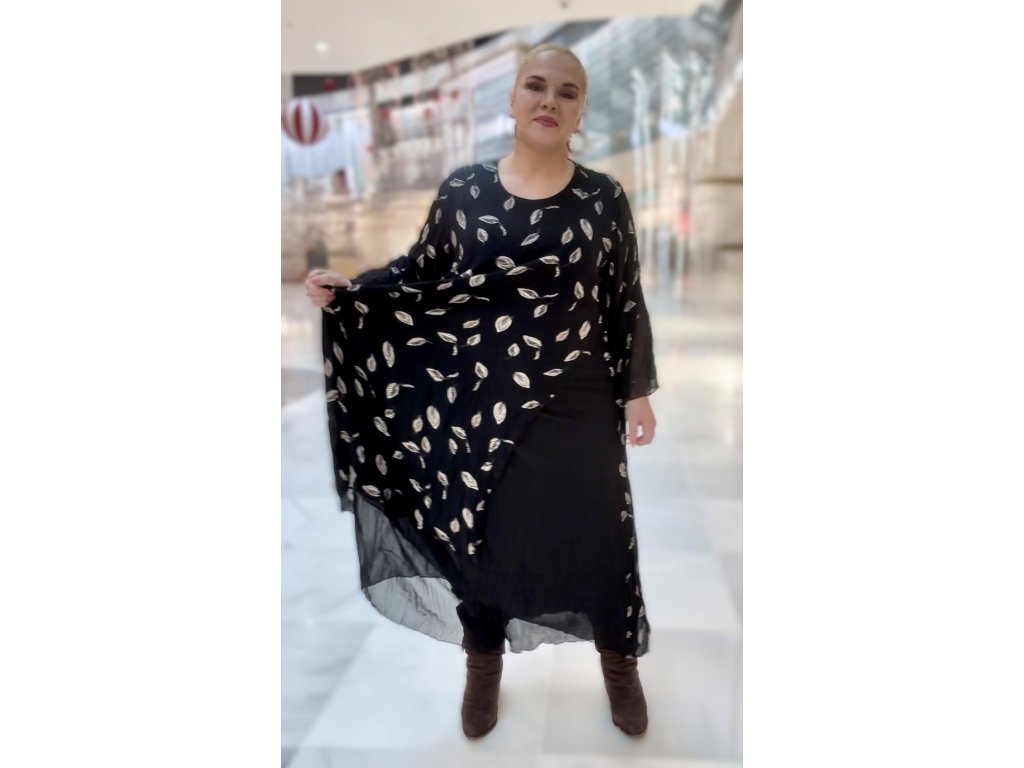 Volné a vrstvené, ale strukturované šaty, kvalitní směs viskózy a polyesteru vytváří příjemný dojem na těle.