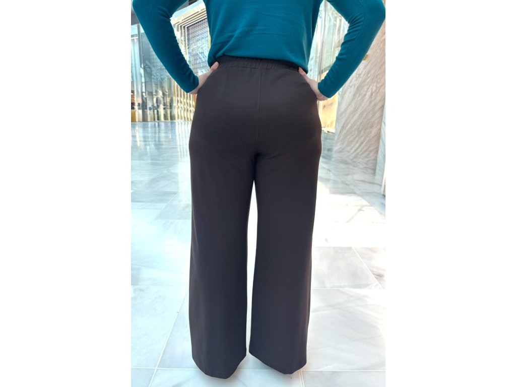 Pohodlné a elegantní úpletové kalhoty v super aktuálním čokoládovém odstínu s mírně rozšířenou nohavicí. Skvělý kousek do kanceláře i na volný čas.