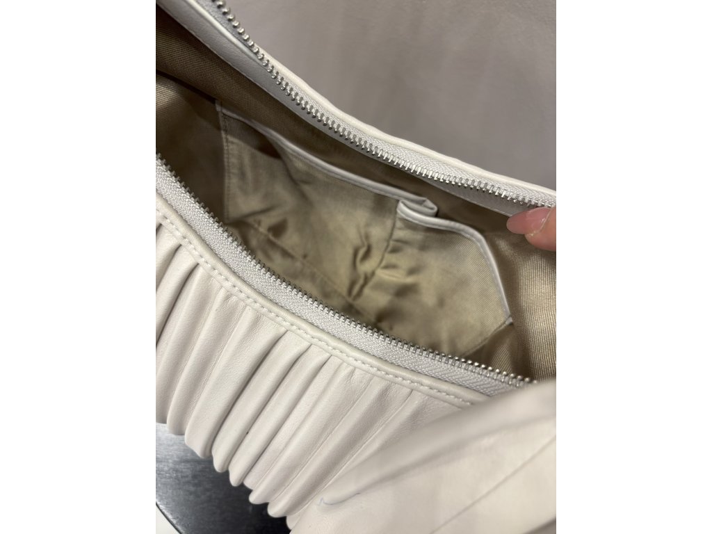 Elegantní kožená kabelka s plisé efektem z hladké pravé kůže spojuje styl, praktičnost a špičkové italské řemeslo. Díky pevné formě si kabelka udržuje svůj tvar, je vhodná do ruky i přes rameno a stane se spolehlivým doplňkem vašeho každodenního nebo formálního outfitu.