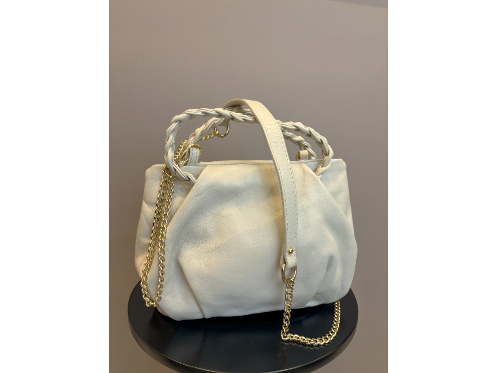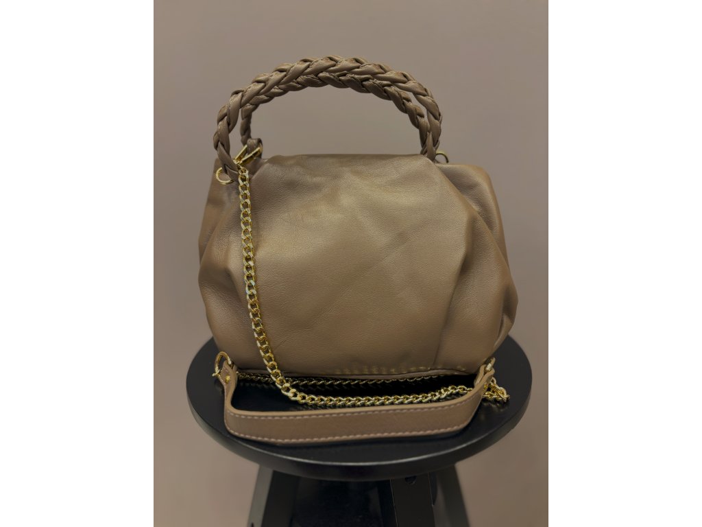 Stylová kožená kabelka s copánkovým uchem, vyrobená v Itálii. Měkký tvar, originální design, splétané držadlo.