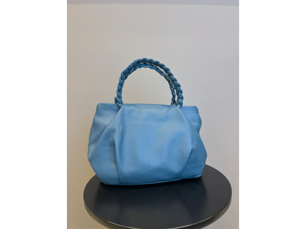 Materiál: Pravá hladká kůže Barva: Světle modrá (dle fotografie) Rozměry (š/v/h): 26 × 18 × 20 cm Zapínání: na zip Nošení: Do ruky Vlastnosti: Měkké provedení, ručně pletené ucho Vyrobeno v Itálii