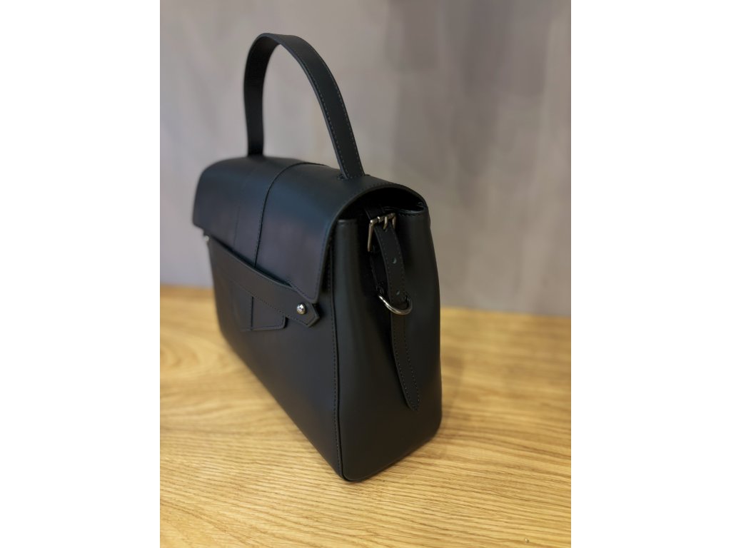 Pevná kožená kabelka z hladké kůže do ruky i přes rameno s nastavitelnými popruhy. Zapínání na zip a magnet. Uvnitř rozdělena na dvě části kapsou na zip. Boční kapsička na zip. Vyrobeno v Itálii.