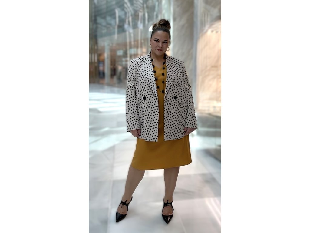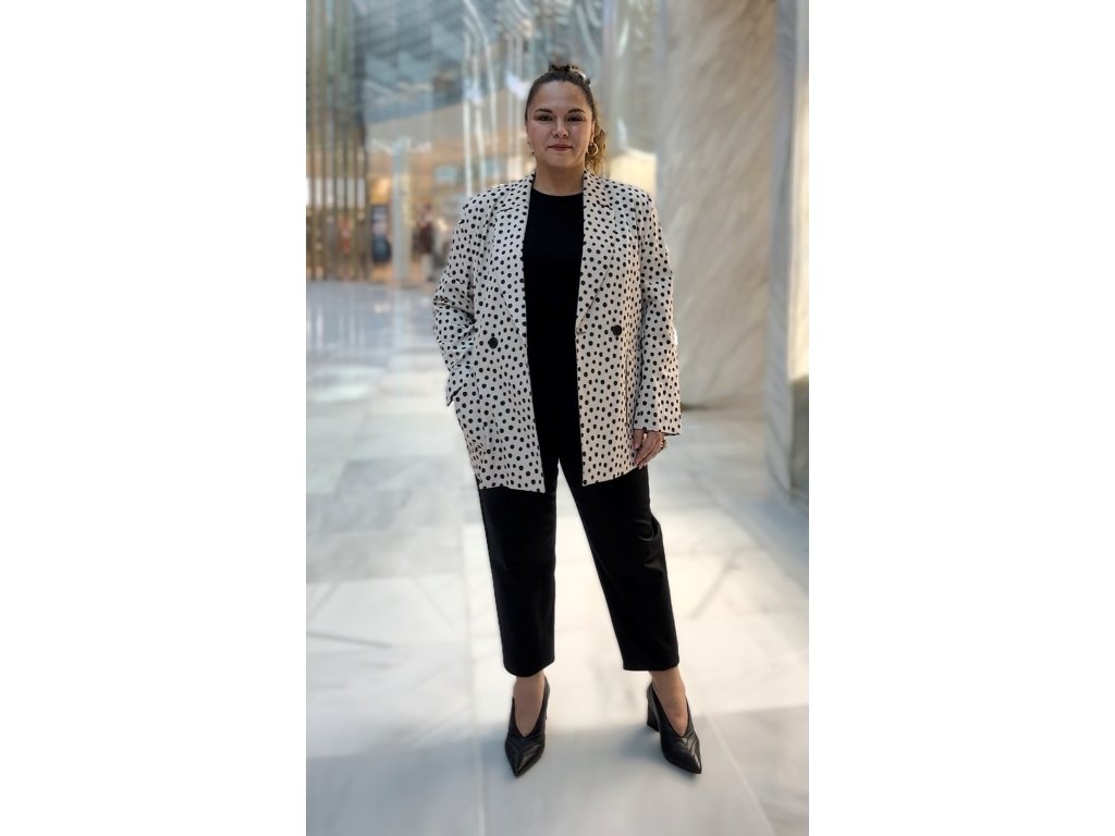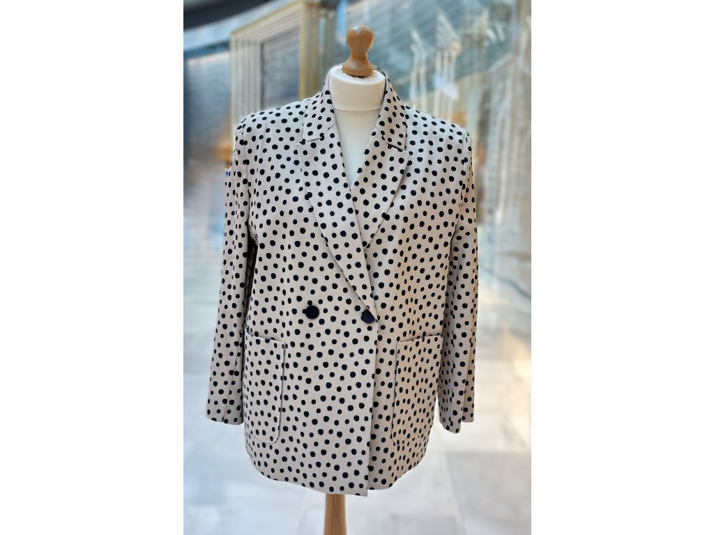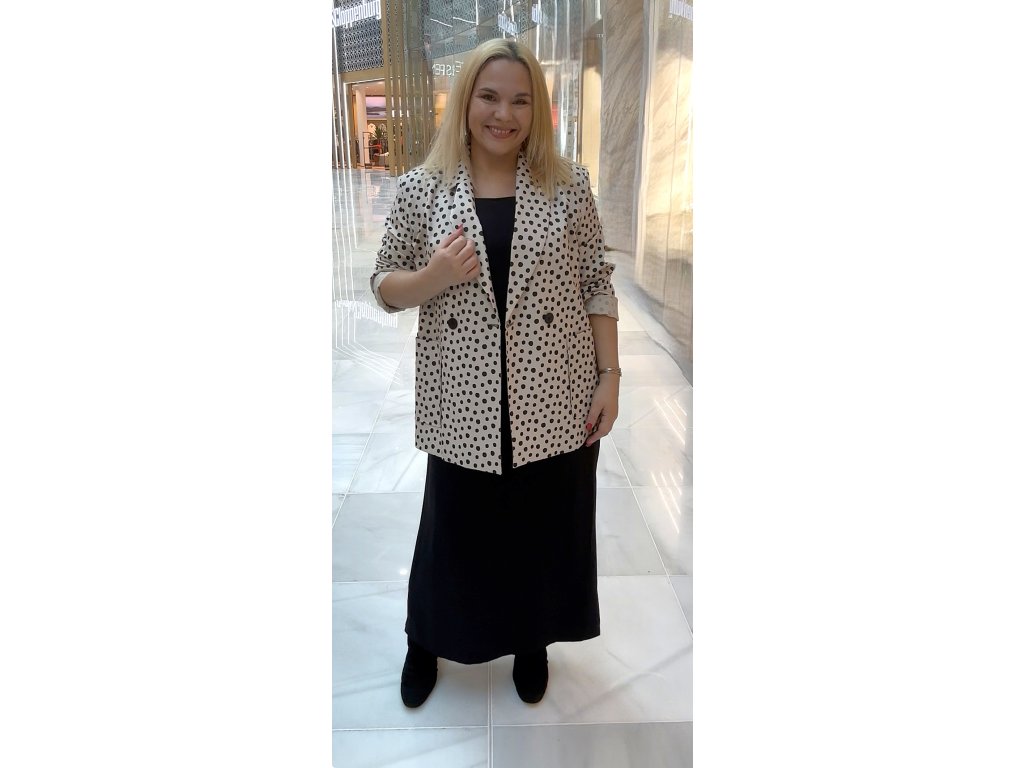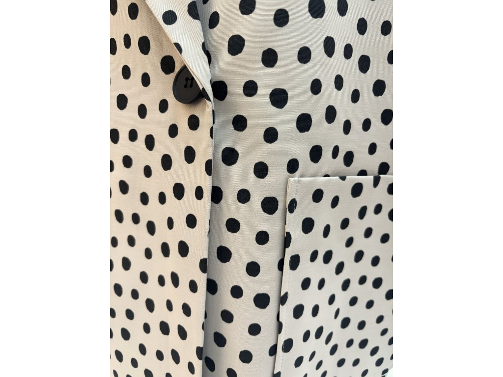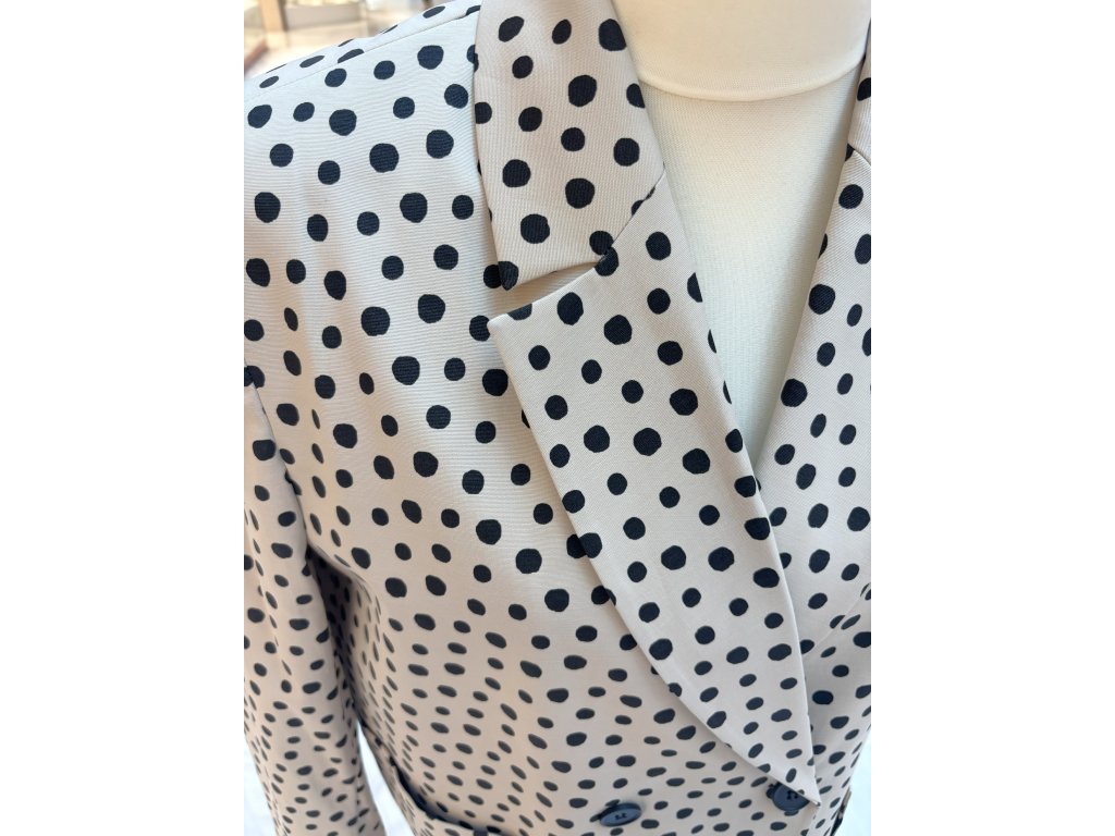 Elegantní puntíkované sako LAVIN v krémové barvě s černými puntíky. Nadčasový střih, kvalitní materiál (59 % bavlna), vyrobeno v Turecku.