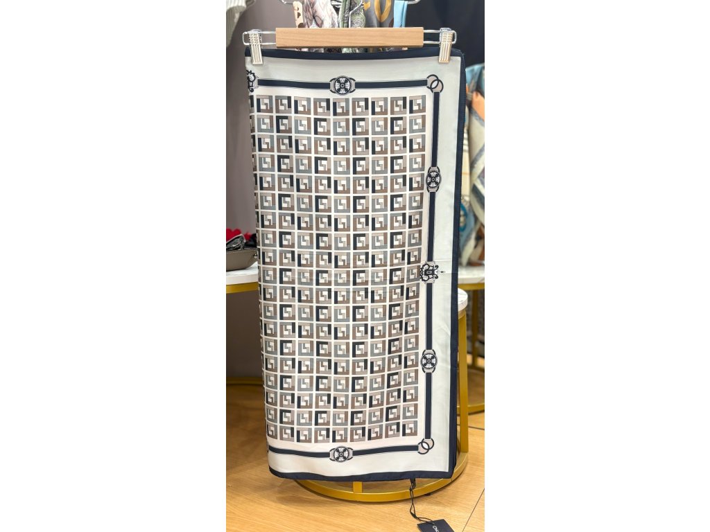 Luxusní šátek 73×73 cm z viskózy a hedvábí s elegantním geometrickým vzorem, příjemný na dotek, vyrobeno v Itálii.