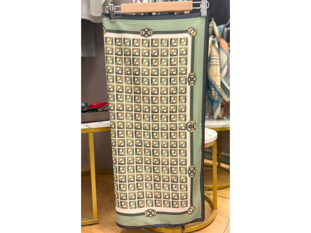 Materiál: 70 % viskóza, 30 % hedvábí Rozměr: 73 × 73 cm Vyrobeno v Itálii Dostupné varianty: Béžovo-hnědá, zeleno-zlatá